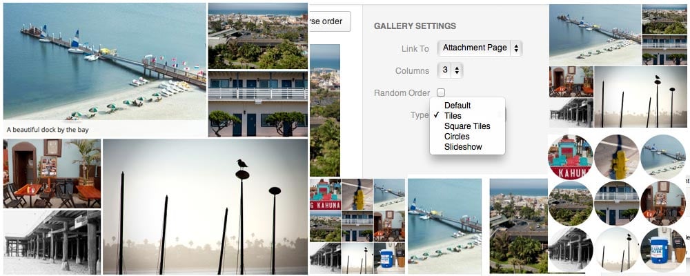 Para tener estos nuevos tipos de galería debemos, en primer lugar, activar el módulo «Tiled Galleries» en nuestro cuadro de mandos de Jetpack. A continuación, ir a Ajustes → Medios en el menú de administración, y a continuación seleccionar la casilla «Display all your gallery pictures in a cool mosaic». La elección de esta opción hace que este diseño por defecto se habilite para todas las galerías de tu blog, incluidas las que se han insertado previamente.
